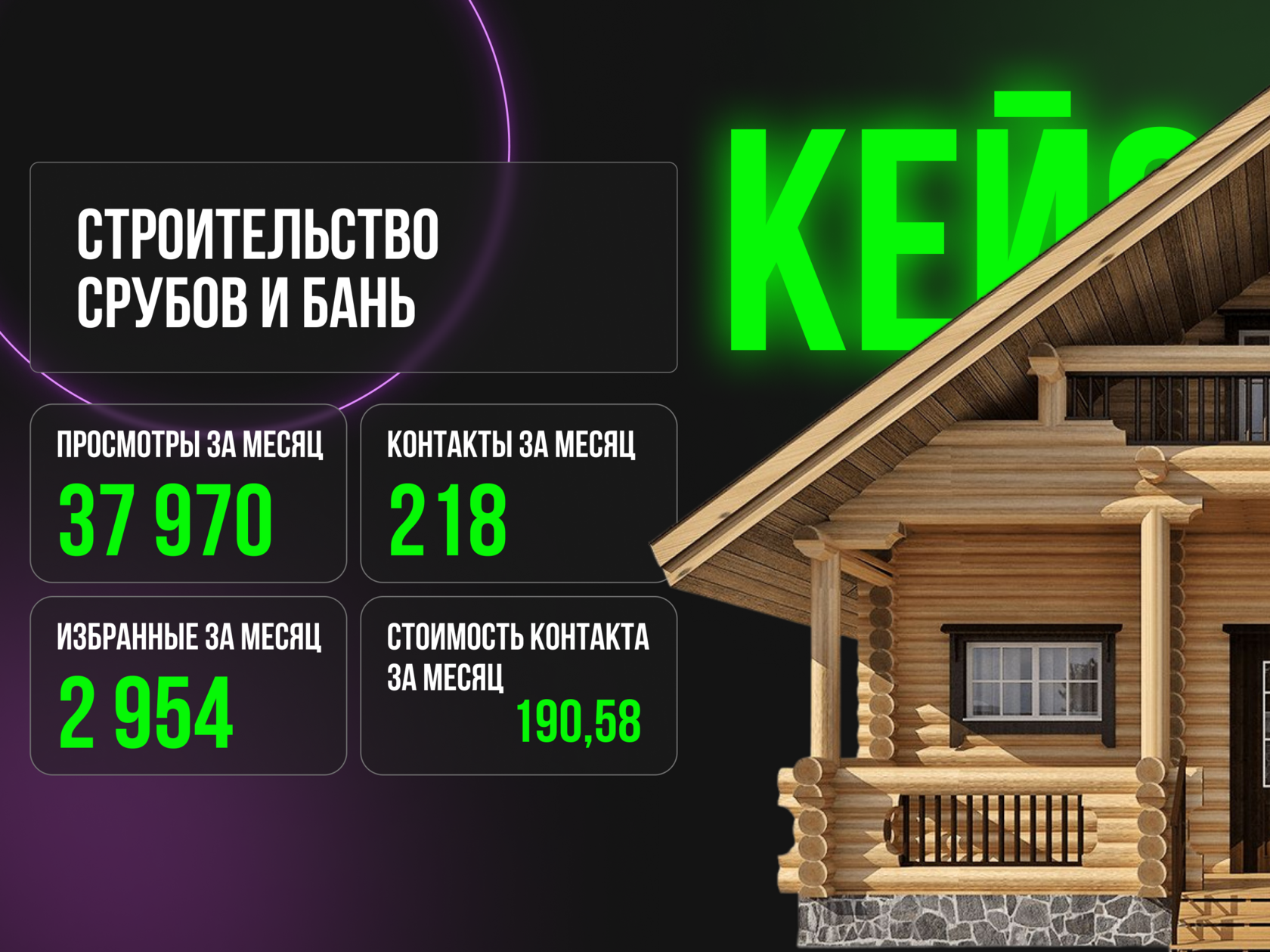 Наш постоянный Заказчик занимается строительством срубов и бань из оцилиндрованного бревна собственной заготовки. За два года совместной работы была проведена комплексная рекламная кампания и протестированы различные инструменты, гипотезы и география предоставления услуг. Мы осуществили дизайнерское оформление Авито-кабинета, подготовили продающие тексты под ассортимент с акцентом на преимущества заказчика, наполнили профиль фото- контентом.