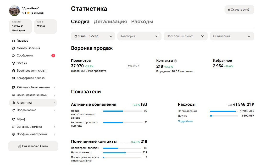 Просмотры ушли в космос: с восьми тысяч до почти сорока. Контакты выросли в два с половиной раза. Избранное — плюс триста процентов, люди сохраняют объявления, чтобы вернуться через месяц, через три, через полгода.