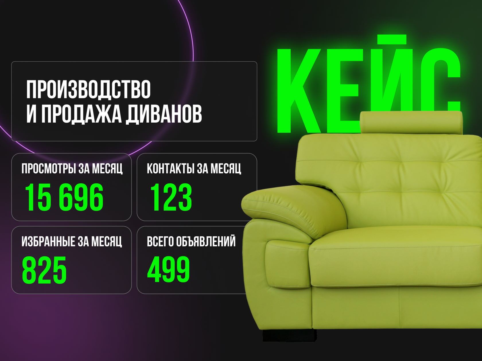В ноябре 2024 года к нам обратился предприниматель, занимающийся производством и продажей диванов. Несмотря на внушительные вложения в рекламу на Авито, его бизнес буксовал: продаж не было, хотя просмотры и контакты присутствовали. В профиле размещалось 2 151 объявление, траты бюджета доходили до сотен тысяч рублей, но результатов не было.