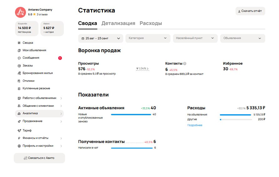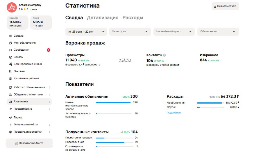 Этот кейс наглядно демонстрирует, как с помощью глубокого аудита, переработки контента и грамотной настройки рекламной стратегии можно вывести даже работающий, но неэффективный аккаунт на совершенно новый уровень. «Antares Company» всего за один месяц превратился из незаметного игрока в лидера в своей нише на Авито, получая стабильный поток клиентов.